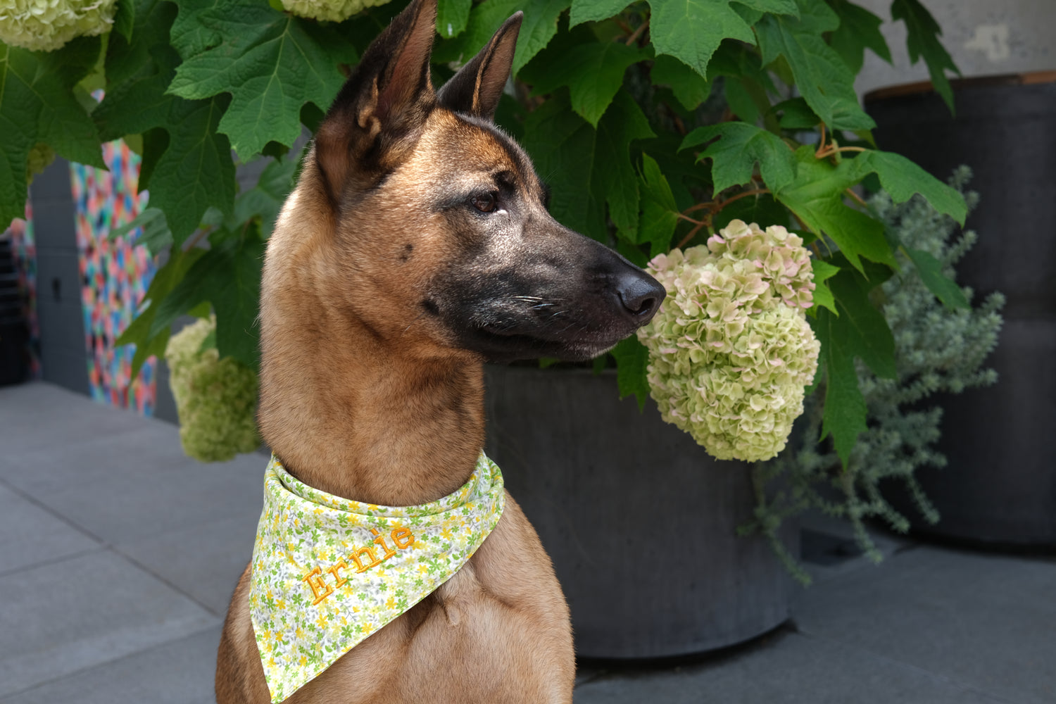 Originally from Hong Kong, Ernie was given his first bandana as a present from one of his BFF`s (best furry friend), Stanley. He loved wearing it and so did the passersby! He was no longer deemed a scary boi, but as a “ho dak yi” (cute) puppy. We scoured the stores for more fun prints but the best ones we found were from small online businesses. With a move to Japan on the horizon (and a love for the gorgeous prints there), we decided to start our own online store and bring our customers a smol piece of Japan to wherever they are in the world!